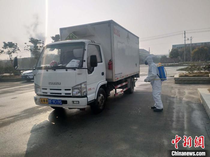 工作人员正在对运输车辆进行消毒 冷红刚 摄