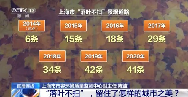 陈波:上海是一个人文之城,是一个海纳百川的城市,我们希望这些景致能有一些代表性。但也不是每一条道路都适合开展“落叶不扫”,因为里面还有考虑到交通通行情况,包括有些路段可能在一段时间会有一些施工等等,肯定不适宜开展“落叶不扫”。