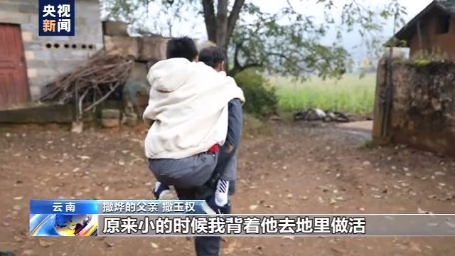 撒烨的父亲 撒玉权:原来小的时候我们背着(他)去地里做活,长大以后就背不动了,就(让)他在屋里头,就整了一部手机给他。