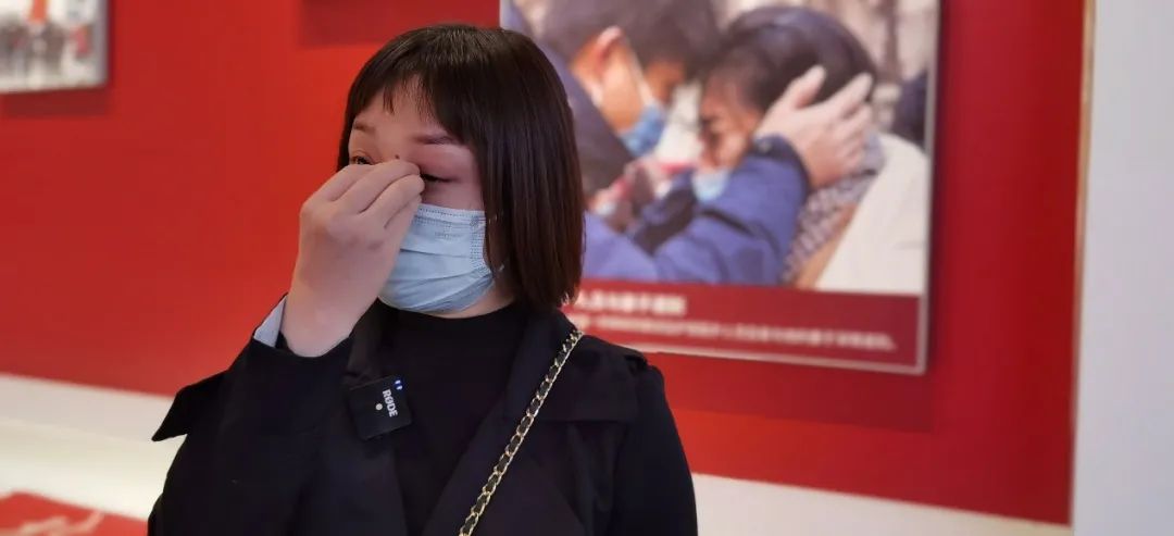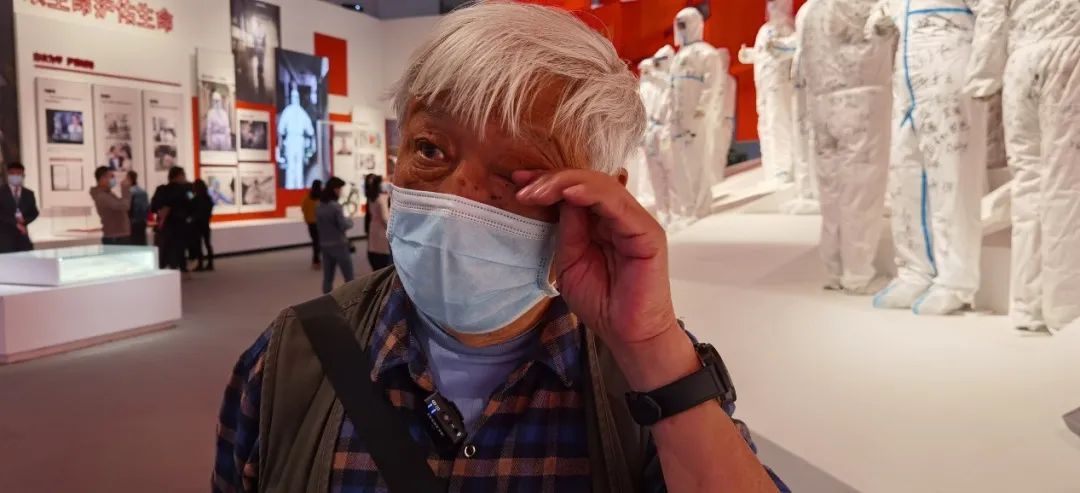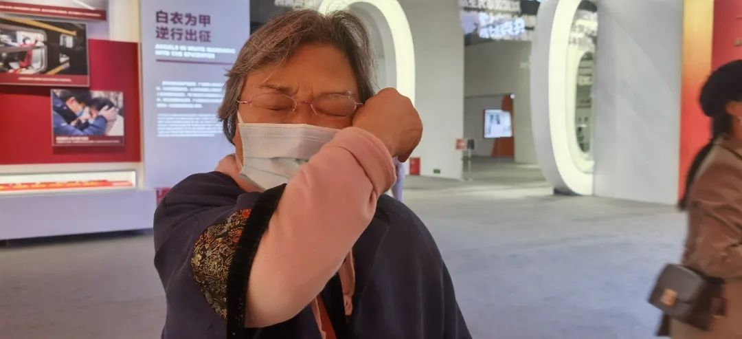 在观展的观众中,有这样一群人,他们或是曾经奋战在抗疫一线的援鄂医疗队员,或是解除隔离的留学生,又或是展品提供者、亲历疫情的市民。观展时,他们忍不住流下了眼泪.。。