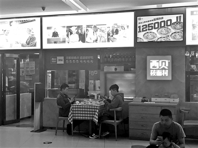 “西贝莜面村”店内招牌(左)与“莜面人家”店外招牌