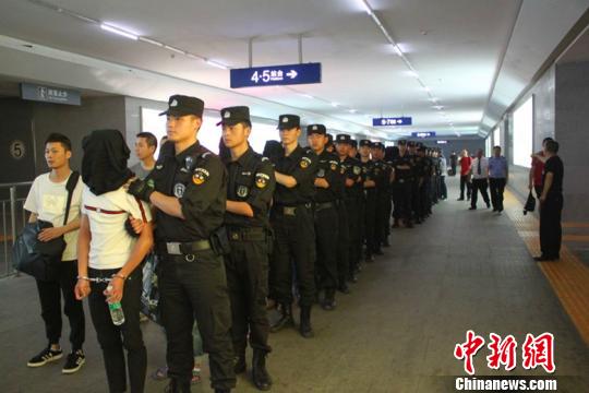 警方押解犯罪嫌疑人到广元。警方供图