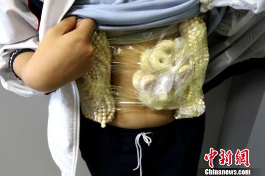 中新网南宁5月8日电 (何璐璐 林浩)南宁海关8日通报,其隶属东兴海关近日在东兴口岸查获人身绑缚式走私违禁品入境案,与往常不同的是,这回查获的是象牙制品,数量多达49件。