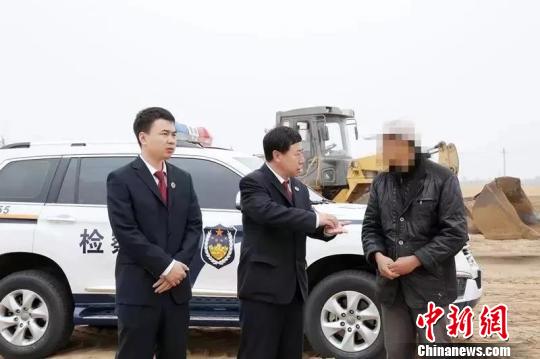 图为检察干警现场监督张某“补植复绿”。 通辽市检察院供图 摄