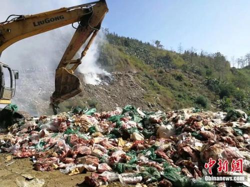 央广网红河州5月12日消息(记者李健飞 李腾飞)据中国之声《新闻纵横》报道,在云南红河州金平县,每隔一到两周,当地缉私部门会将查获的冻品拉到填埋场销毁。近日有媒体接到线索,相关部门在当地三家村垃圾场填埋销毁了10车左右冻品,市值上百万元。随后有记者亲眼见到了上百村民在坑里刨肉的情况,场面令人震惊。