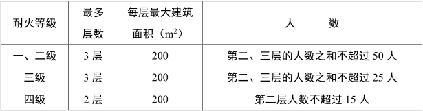 1 除托儿所、幼儿园外,建筑面积不大于 200m²且人数不超过 50 人的单层公共建筑或多层公共建筑的首层;