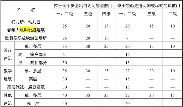 注:1 建筑内开向敞开式外廊的房间疏散门至最近安全出口的直线距离可按本表的规定增加 5m。