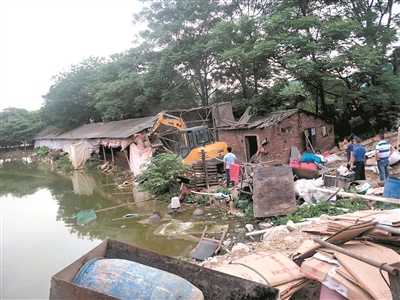 花都大陵河猪场窝棚清拆中。
