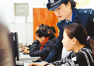 安徽省淮南市开展“净网”行动,民警引导学生文明上网。