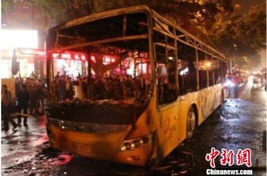 2014年11月21日,柳州市屏山大道一辆搭载约40名乘客的快速公交车(BRT)在行驶过程中发生人为纵火燃烧事件。资料图