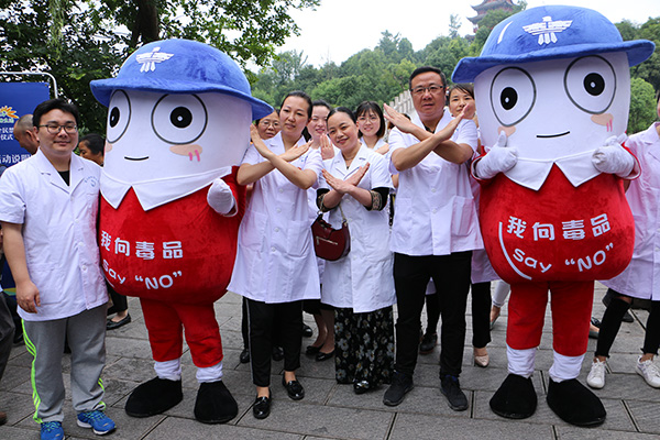 禁毒志愿者与“禁毒娃娃”向市民宣传禁毒知识。本文图片 重庆市公安局 供图