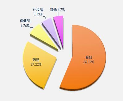 从涉诉商品看,食品、药品、保健品、化妆品等商品最易涉诉,占比高达95.3%。具体为:食品、药品、保健品和化妆品的占比分别达56.19% 、27.22%、6.76%及5.13%。