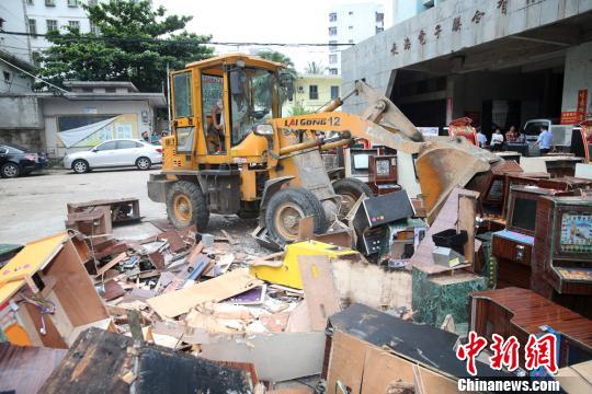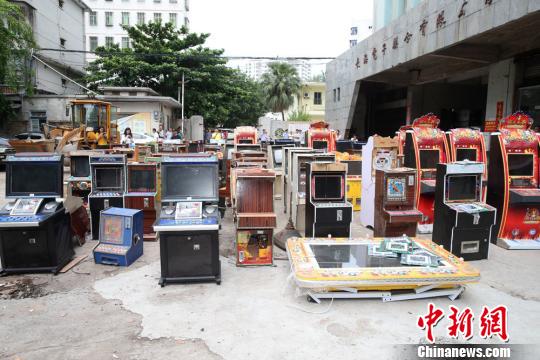 6月15日,海南省公安厅治安总队在海口销毁128台赌博游戏机。海南警方供图