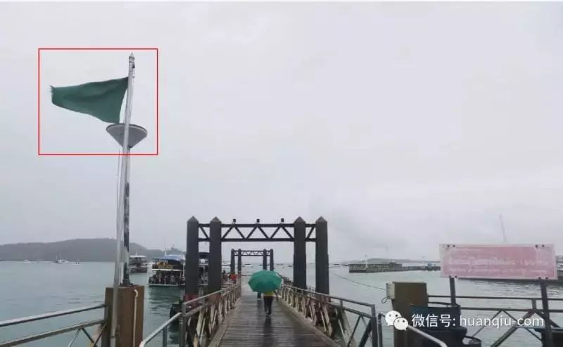 9日,外国游客仍在查龙码头登船出海,码头上依然竖着可以出海的绿旗。