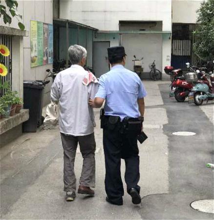 7月4日清晨6点,徐家汇派出所巡逻民警胡森峰和赵立照常在辖区巡逻。这时,路边的一处异常情况引起了他们的注意,一名身穿白衣的老人踉踉跄跄地跟在一名身穿黑衣的男子身后,男子一边快步朝前走一边朝老人摆着手,似乎在拒绝什么。