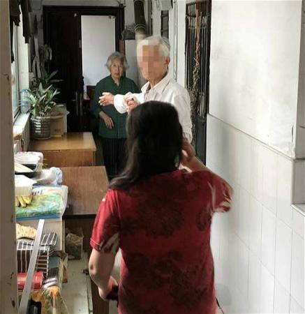 图说:徐家汇民警送患有阿尔茨海默症的老人回家。徐汇警方供图