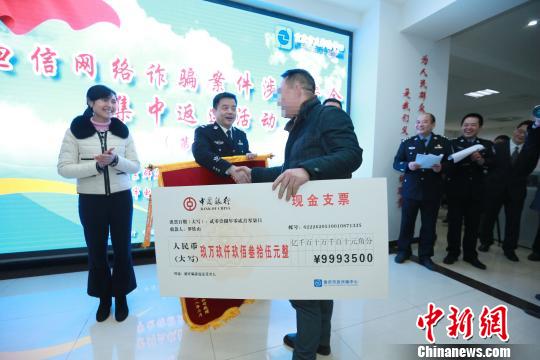资料图为重庆警方返还被骗资金。 重庆市公安局刑侦总队供图 摄