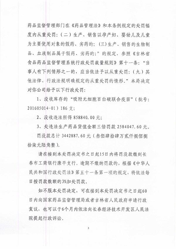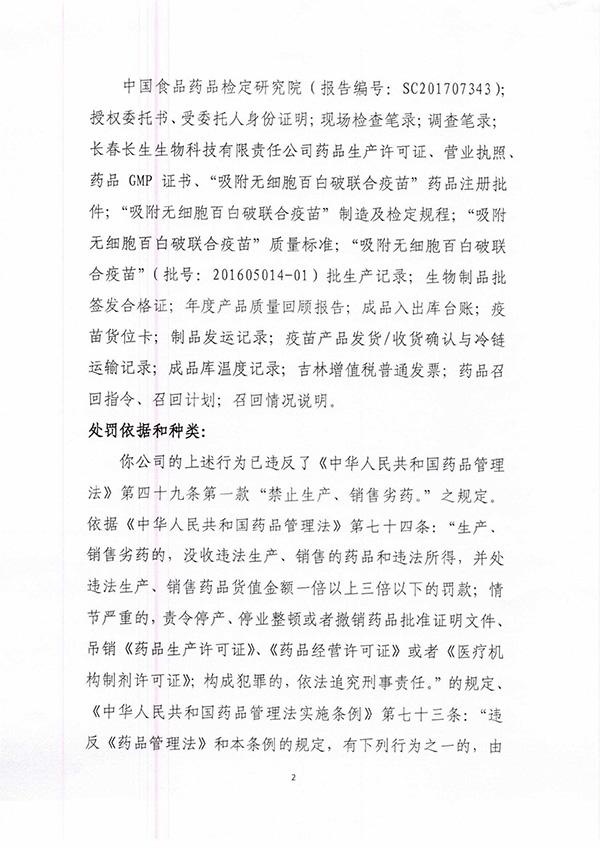 吉林省食药监局将长春长生公司效价不合格的百白破疫苗认定为劣药。该公司的违法行为被认定为“生产销售劣药”。
