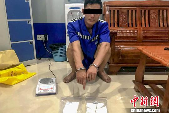 图为被抓获的犯罪嫌疑人及缴获的毒品。 钟欣 摄