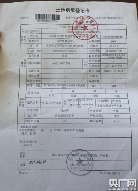 图为蓝湾产权大证。(央广记者 周益帆 摄)