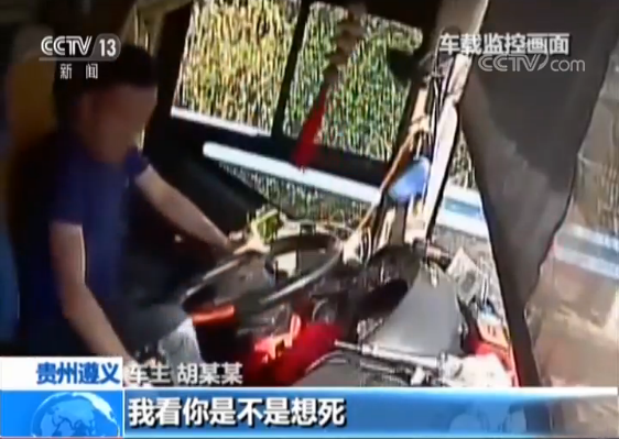 播州区公安分局龙坑派出所副所长 郑靖:受害者没有办法,就跑去抓住驾驶室窗户,车子继续往前走,姓胡的驾驶车子 ,就抓住他的手把手推下去,开着车就往毕威高速路跑了。