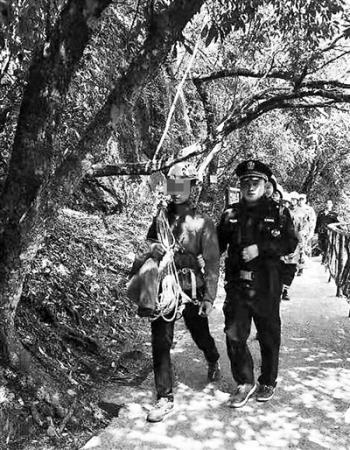 在攀爬的过程中,张某等3人将20多枚岩钉打入巨蟒峰,然后用绳索向上攀爬。后三清山风景区迅速组织相关人员,制止3位驴友擅自攀登行为并采取救助措施,将他们带到安全地带。