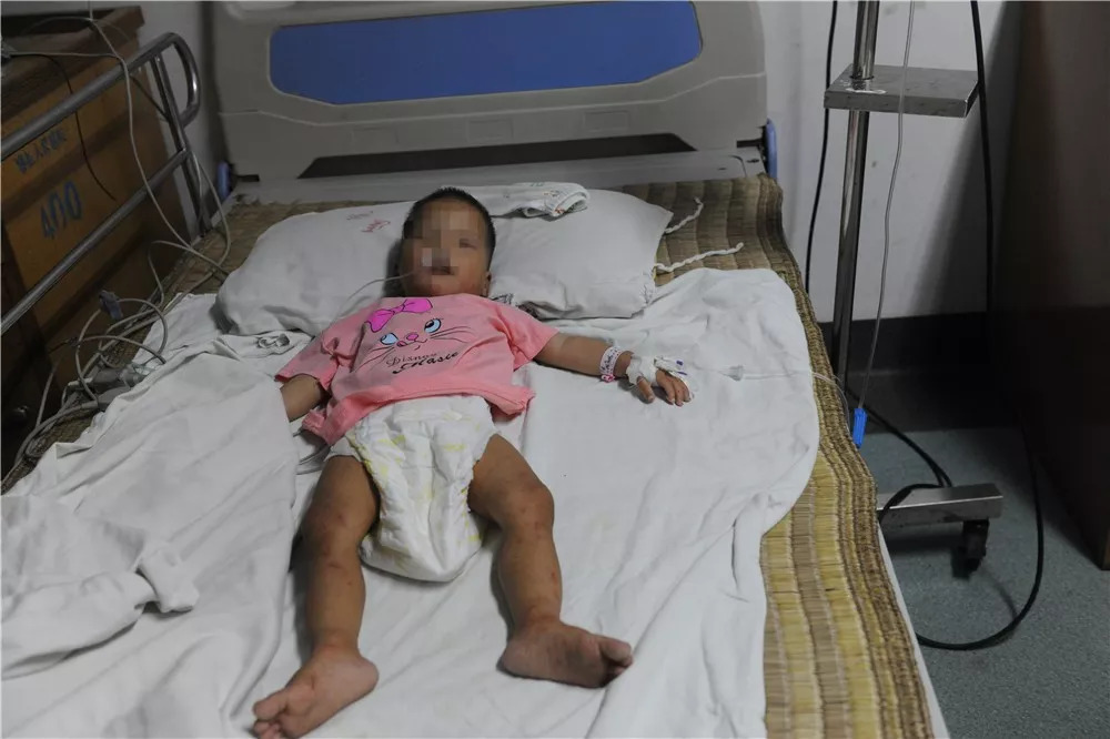 在医院里接受治疗的小娇,小手小脚都被野草割的一道道伤痕。