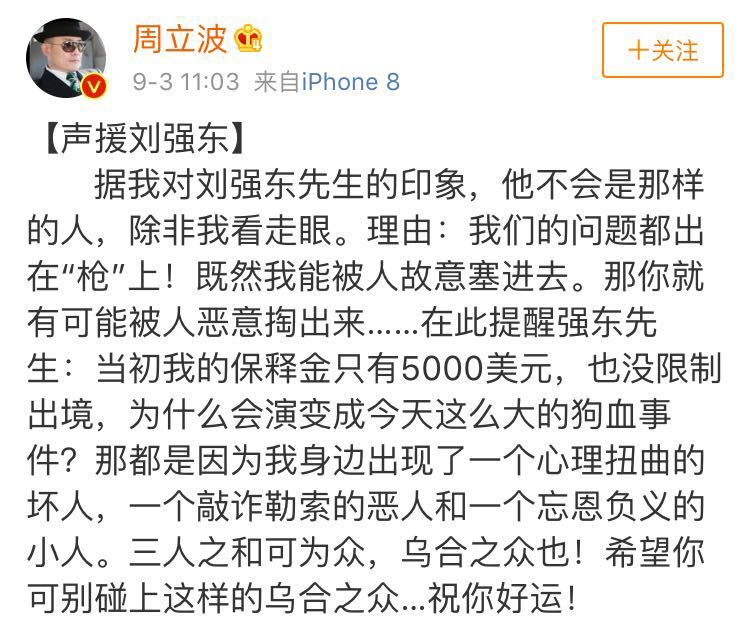 刘强东拘留照曝光,被曝在美性侵女生!京东称遭到失实指控,周立波发微博声援