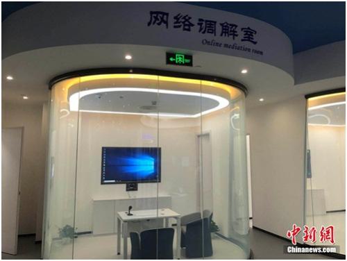 此外,记者在网络法庭和网络调解室看到,两地均采用电子调光玻璃。当这些法庭和调解室用于庭审或调解时,法官或调解员可以通过遥控器调整玻璃状态,使之呈雾化状态,避免其工作受外界干扰,亦利于保护当事人隐私。当这些法庭和调解室闲置时,玻璃可被调至透明状态,方便公众了解和体验。