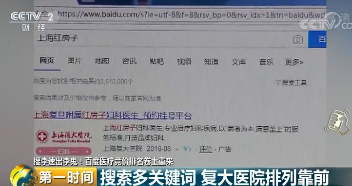 上海市工商局广告处副处长 李华:这种以本地知名医院名称作为关键字发布付费搜索广告,并且在广告内容中大量出现与知名医院相关联的要素,引起消费者误解。