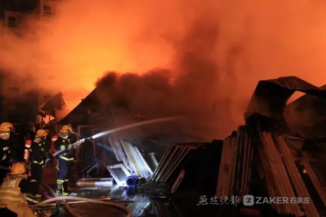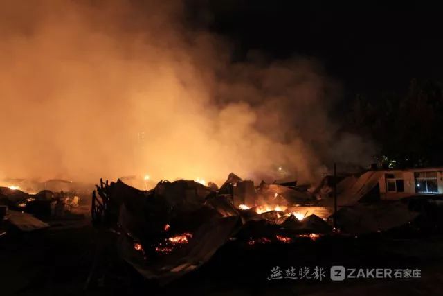 晚上 10 时 20 分许,记者赶赴现场了解情况。着火的具体位置位于石清路与友谊北大街交叉口西南角的石家庄市久益旧货市场,一个加油站就在该市场的北侧。大火仍在燃烧,滚滚浓烟飘向夜空中。消防官兵正在全力灭火,加油站已得到有效保护。
