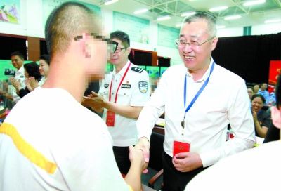 今年活动还特别增加了亲情会面和友情互动环节,邀请服刑人员家属参加帮教。服刑人员代表向亲人汇报了改造成果,表示服刑期间学到了知识,感到了温暖,看到了希望,并发誓要痛改前非,积极改造,回报社会,还向母亲赠送了亲手制作的中秋福卡。与会领导及嘉宾与服刑人员代表亲切座谈,了解他们的生活状态及内心困惑,以亲身经历告诉他们要老老实实做人,踏踏实实做事。海法 摄 J151