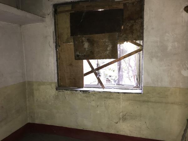 李海军家的窗户全被打破,后又用木板封了起来。 澎湃新闻记者 沈文迪 图大约是四年前,李海军又一次离开家属院,不知去向,没有人再见过他。