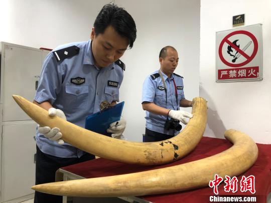 今年6月22日晚,深圳海关缉私部门掌握了蔡某等3名嫌疑人入住东莞某酒店、准备接货的线索。6月25日下午,2名嫌疑人从东莞一路来到了深圳市宝安区某物流园,他们在利用物流公司的货车接取货物后,分别乘坐货车和轿车离开。傍晚,海关人员一路跟随货车行至东莞某工业园区内,借着夜色掩护顺利将2名走私分子抓获,现场查扣两根完整象牙,共计46.7公斤。