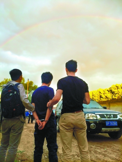 三十而立的陈旭,没想到自己会因为一张照片成为“网红”——去年5月24日,一张民警用手机拍摄的“彩虹抓捕照”热传网络。画面中,两名民警抓获嫌疑人,天空中乌云渐散,彩虹高悬。图片右侧,穿卡其色长裤、黑色体恤的背影就是陈旭。