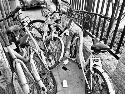 劲松附近停放的共享单车 摄影/实习生 李素云