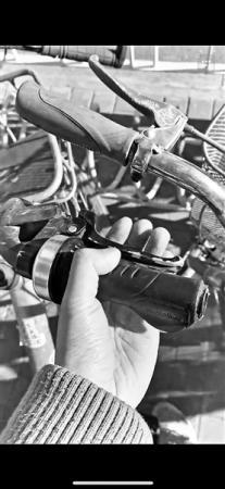 该辆共享单车一边刹车失灵 摄影/实习生 施世泉