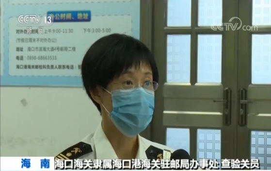 海口海关隶属海口港海关驻邮局办事处查验关员:那我们现场立即对这几颗(颗粒状)物品进行了一个初步检测,检测的结果显示是摇头丸呈阳性。