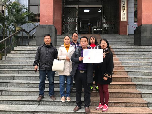 2018年12月28日法院宣判后,被拐儿童申聪的父亲和志愿者在一起。 受访者 供图