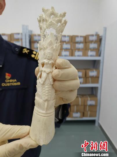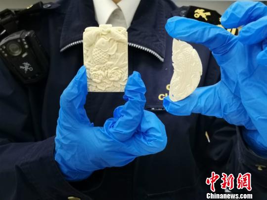 图为海关查获的疑似象牙制品 蒋鑫 摄