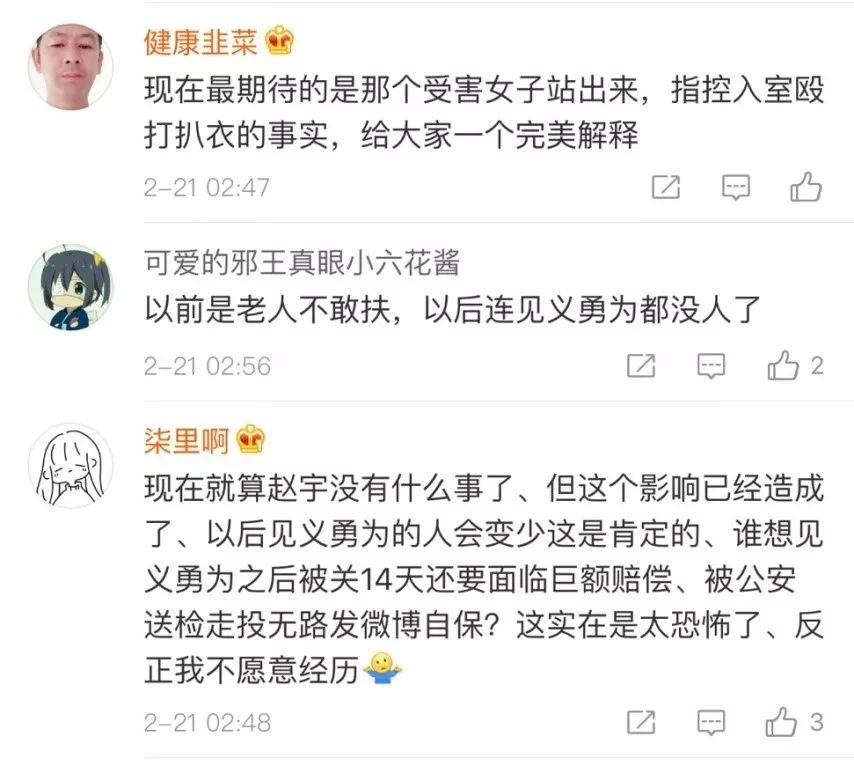 对此,不少网友对赵宇“见义勇为被刑拘”事件也给出了自己的观点:
