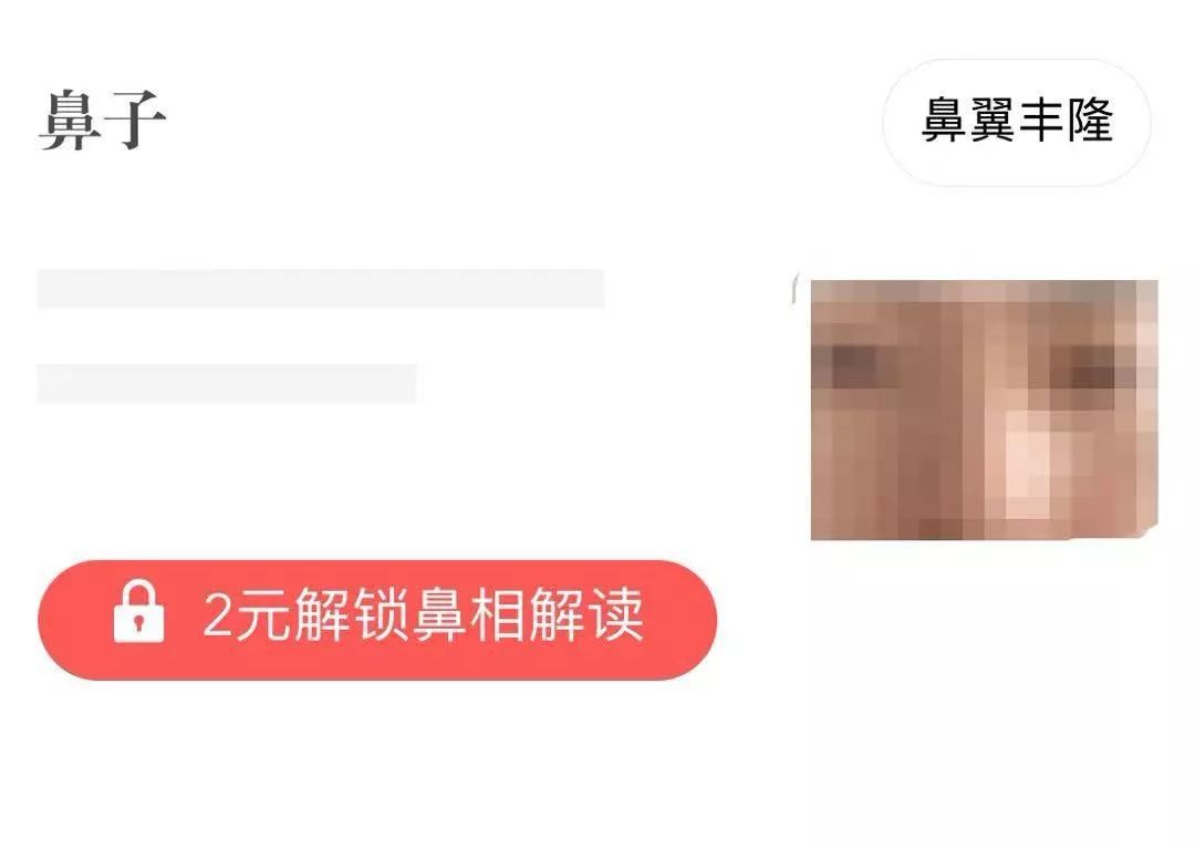 但除了眼睛和嘴巴等五官介绍外,应用提示要付2元才可以解锁鼻相解读。