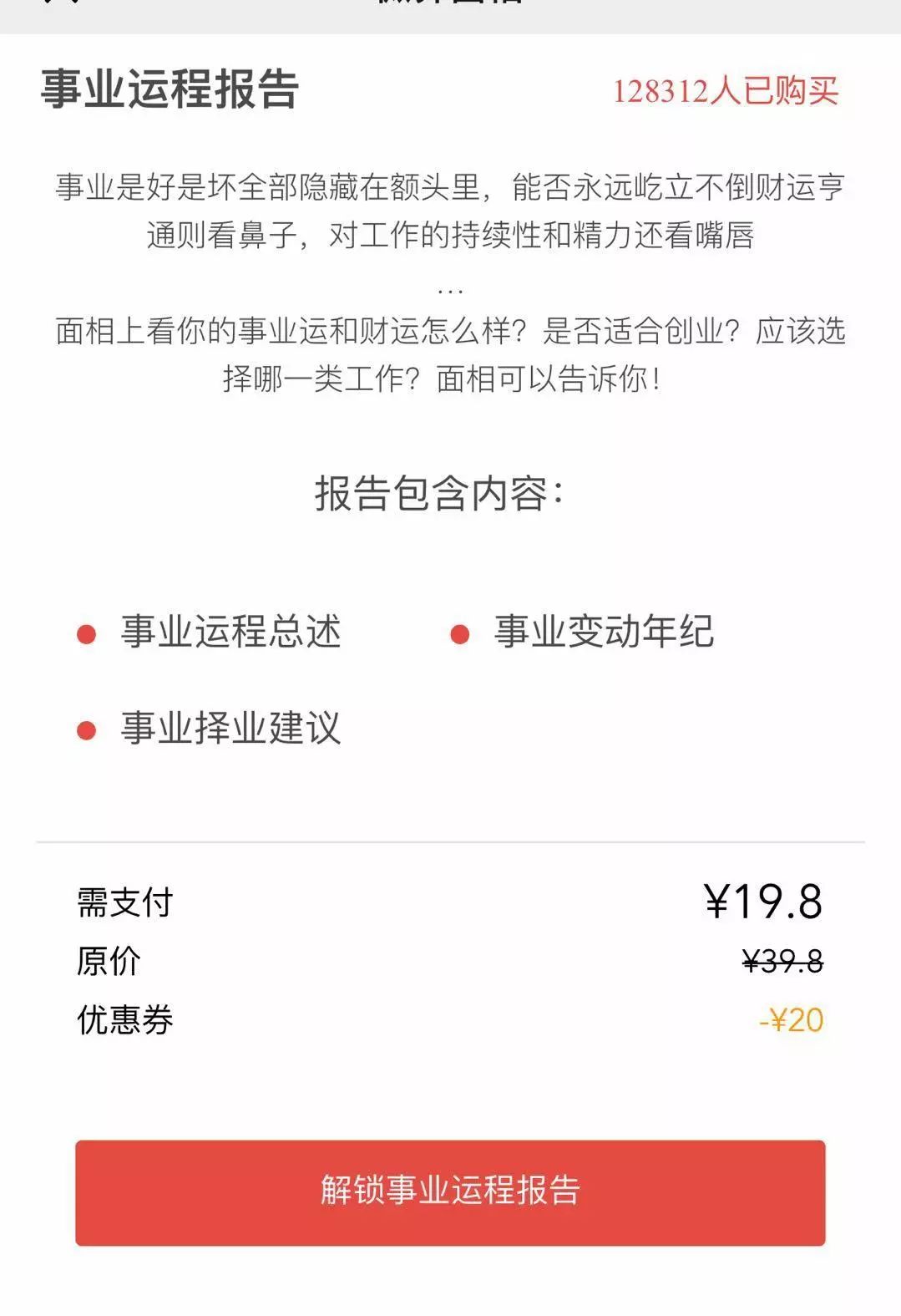 此外,应用中还提供所谓的“面相事业运程报告”和“面相情感运程报告”,但都需要付费19.8元。