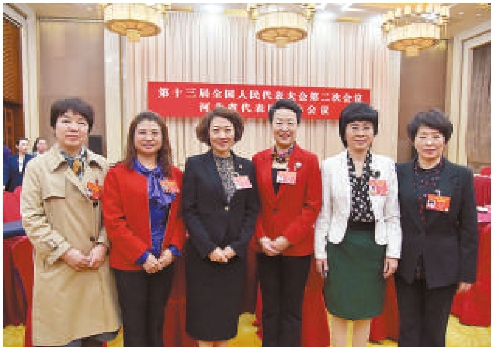 全国人大代表李彦平(左起)、柴会恩、马永平、郭素萍、王凤巧、张军在会场合影留念。