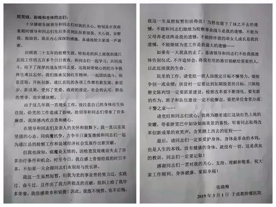 回到巴中后,张学明老人把女儿写给同事们的一封告别信交给了巴中市检察院政治部主任张鹏程。信中,张晓梅写下欣慰与遗憾,“我这一生虽然短暂,但活得值……”