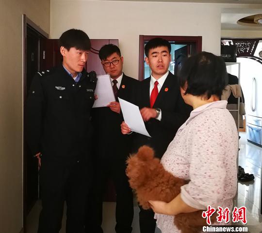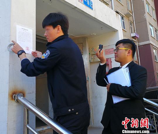 上午十点,记者跟随法官助理高意欣一行抵达太原市某处被执行房产地进行执行工作。“之前一直联系不到被执行人,无法进行电话沟通,他们把法院的电话拉黑了,这次我们上门就是要当面将腾房公告告知,并张贴在门口。”高意欣告诉中新网记者,在抵达前不知道被执行人在家,本来要与物业沟通采取强制执行的措施,但被执行人在家,出于人性化的考虑,与被执行人沟通尽快履行法院判决。