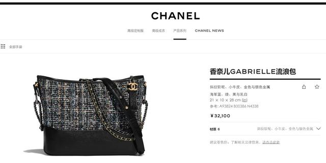 图说:香奈儿官方网站同款Gabrielle流浪包产品信息。