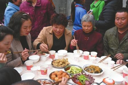 夏刚会(左)一家吃团圆饭。