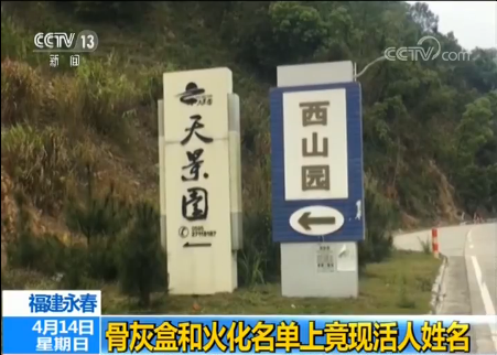 近期,有福建省永春县霞林村村民向记者反映,他们到殡仪馆祭奠时,发现自己的名字竟然出现在殡仪馆的骨灰盒上,而且就连殡仪馆提供的火化名单上也有他们的名字。究竟怎么回事儿?来看记者的走访调查。