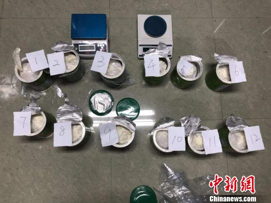 图为在奶粉罐中查获的冰毒 德宏边境管理支队供图